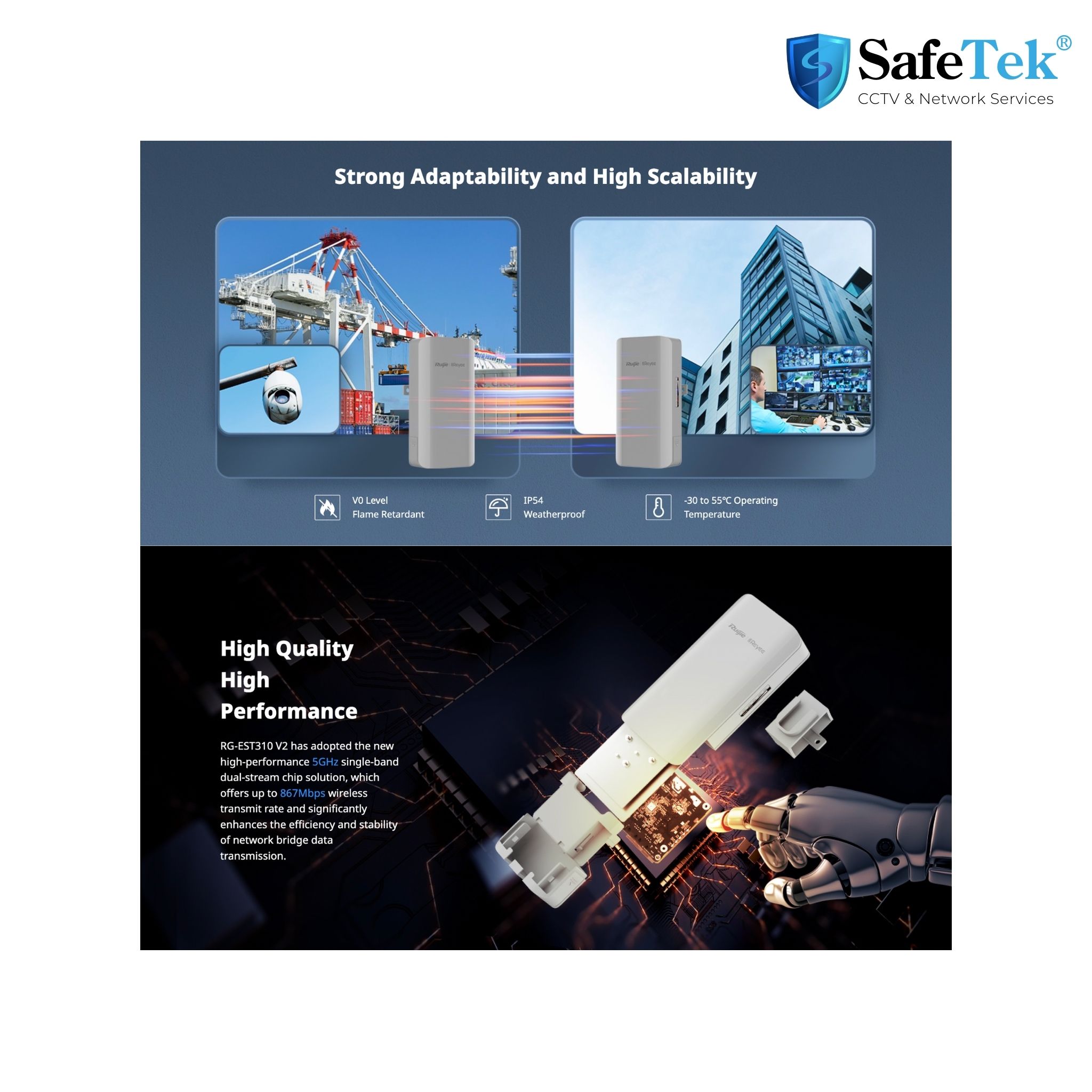 – Sản phẩm phù hợp lắp đặt cho các khu vực ngoài trời cần truyền tín hiệu với khoảng cách xa như camera đường phố, các khu vực không thể triển khai cáp,… khoảng cách xa lên đến 2KM